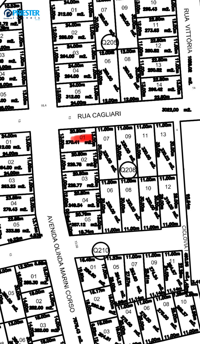 Lote situado no Loteamento Vila Marini, Bairro Água Branca, Av. Olinda Marini Corso, 118, esquina com a Rua Cagliari, Quadra 208, Lote 01;